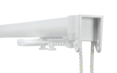 In contrast to the 6840 track, the Silent Gliss 3840 track features corded operation. This enables effortless opening and closing of curtains through a side cord. Corded operation proves particularly advantageous when curtains draw behind furniture or when one side of the curtain is hard to reach. It's also beneficial for tall windows or doors, as the cord facilitates easy manipulation of the curtains without touching the fabric.