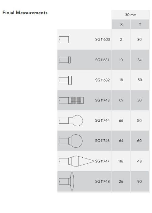 To better visualise the finials and their dimensions, we’ve included the following image outlining the full range of finial options for the Silent Gliss 30mm Metropole track: